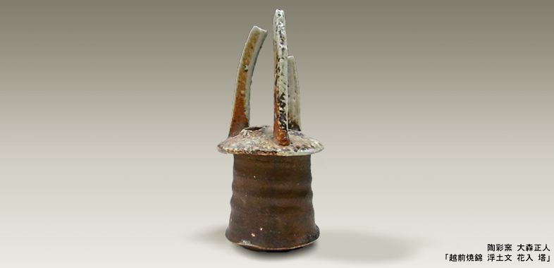 No.EF0003/越前焼錦 浮土文 花入 塔