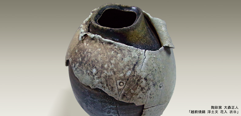 No.EF0006/越前焼錦 浮土文 花入 衣B