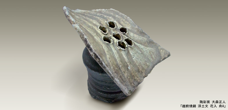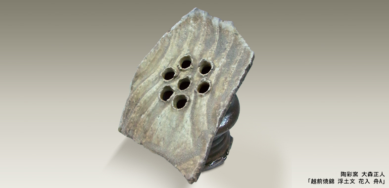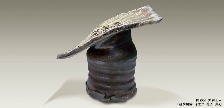 No.EF0008/越前焼錦 浮土文 花入 舟A