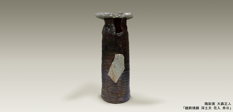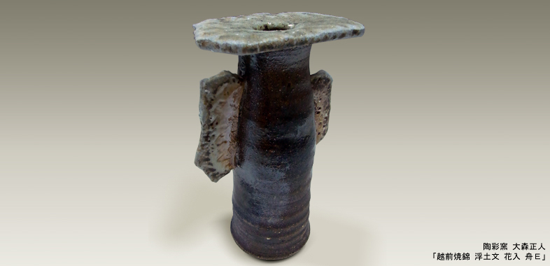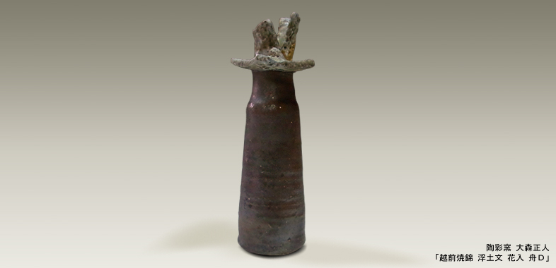 No.EF0012/越前焼錦 浮土文 花入 舟E