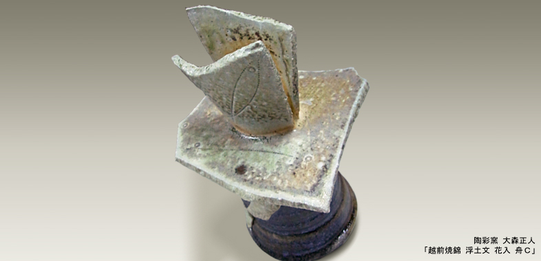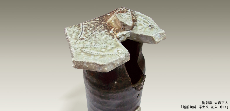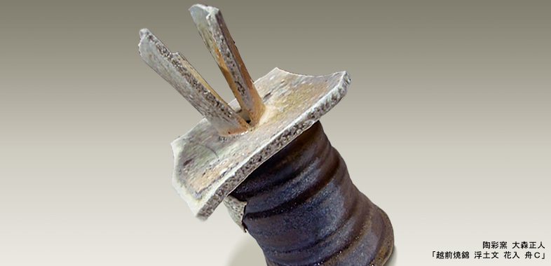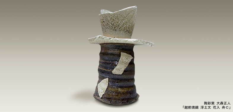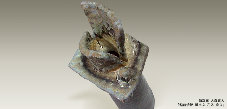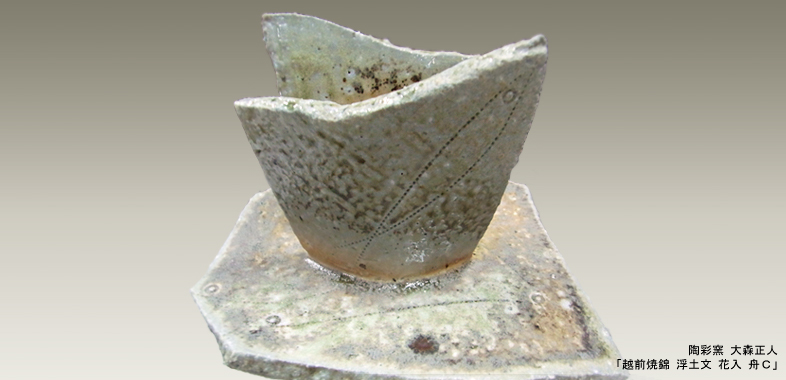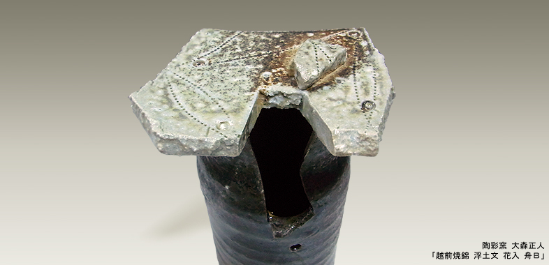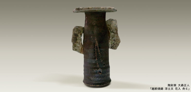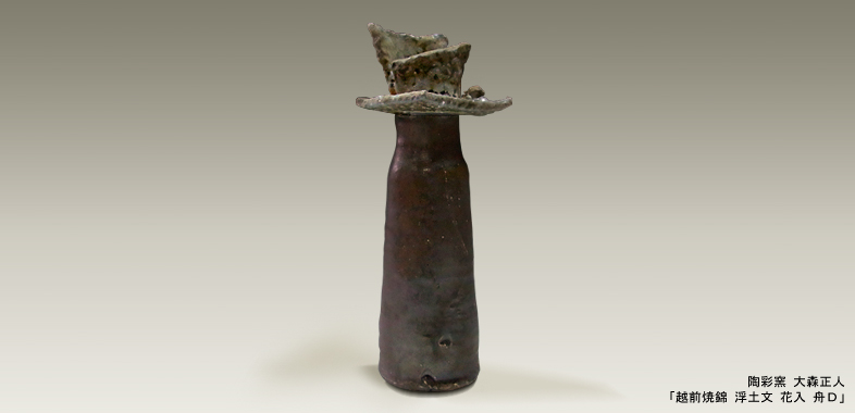 No.EF0011/越前焼錦 浮土文 花入 舟D