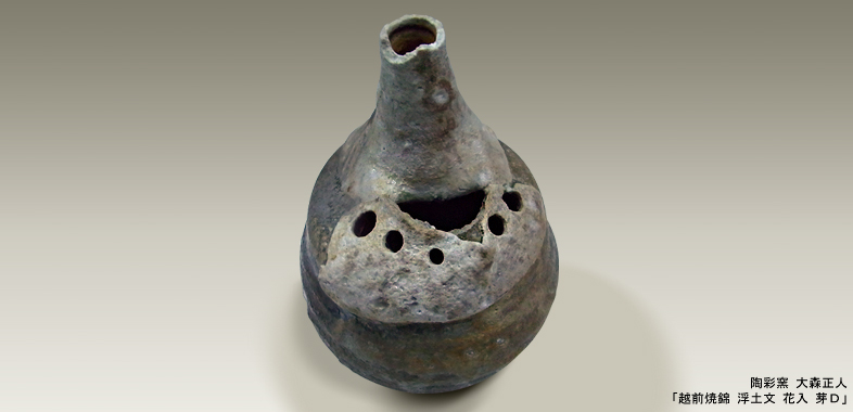 No.EF0022/越前焼錦 浮土文 花入 芽B