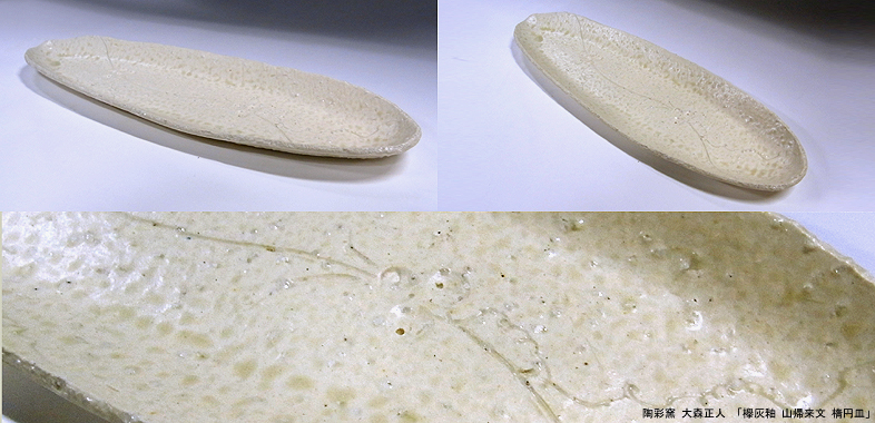 No.GFT0016/欅灰釉 山帰来文 楕円皿