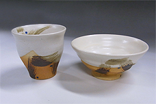 No.GFT0007【 越前 灰釉 線文 湯呑/飯碗 】湯呑/価格:\2,940飯碗/価格:\2,940 |